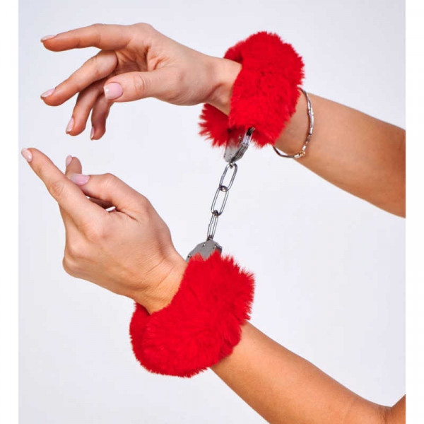 Металлические наручники обшиты супер объемным экомехом красного цвета! Мех съемный, что позволяет экспериментировать с ощущениями!