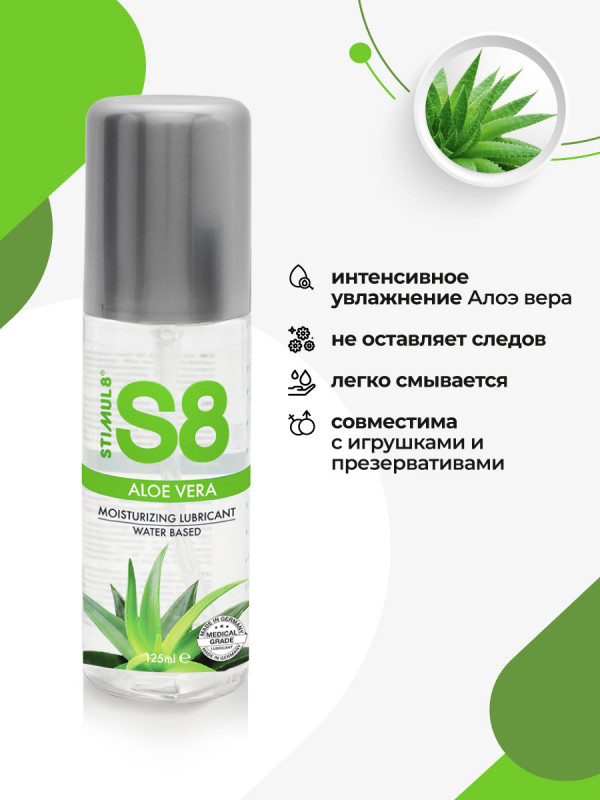 Гипоаллергенный гель с алоэ вера на водной основе без глицерина с невероятно шелковистым длительным скольжением "Stimul 8 Aloe Vera" - идеальное решение для людей с сухой чувствительной кожей и склонных к аллергии!